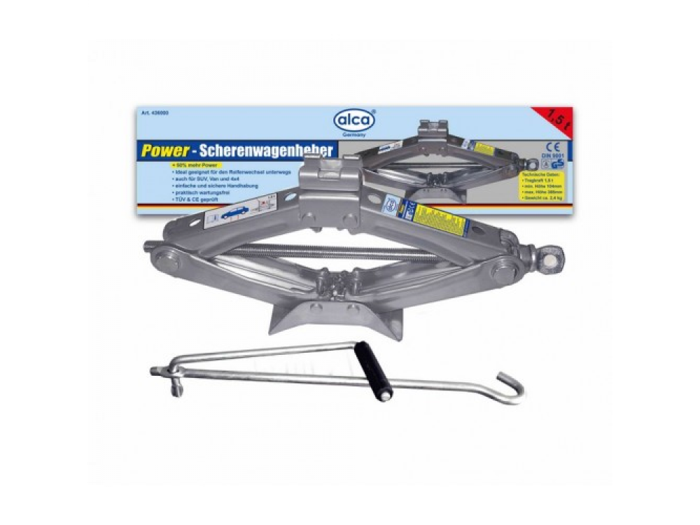 Домкрат механический 1,5 т, Высота подъёма: 104 — 385 мм. Вес 2.4 кг.