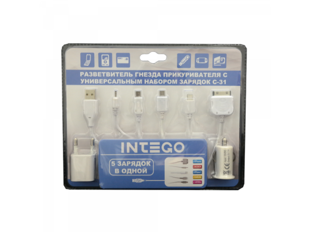 - Универсальный провод-зарядка на 5 типов приборов (Apple, Nokia, Samsung, HTC, Motorola).