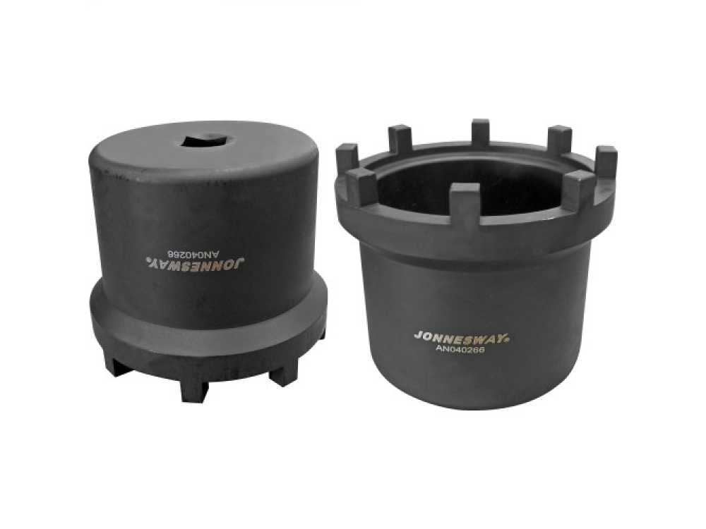 Специальная насадка применяется для откручивания и затяжки круглой гайки с радиусным зацеплением, крепления ступицы ведущего моста грузовых автомобилей SCANIA. Параметры: Ширина шипов/количество 9 мм х 8 шт.; Диаметр внешний 119 мм.; Диаметр внешний 113 мм.; Привод 3/4"DR.