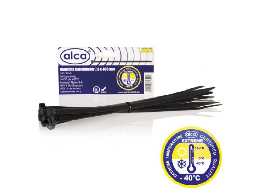 Хомут—стяжка кабельная пластиковая W7.2 L400, цвет черный, 50 шт. в упаковке, температура эксплуатации от — 40 до + 85, материал нейлон, устойчивость к окислению и травлению.