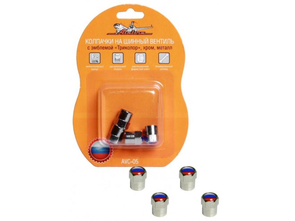 Изделие предназначено для блокировки входного отверстия воздушного клапана автомобиля от попадания различного рода загрязнений и воды, кроме того, колпачок создает препятствие для травления воздуха из шин автомобиля. Данная модель изделия изготовлена из металла и имеет резиновую вставку на основании. Изделие украшено эмблемой российского триколора, расположенном на внешней стороне колпачка.