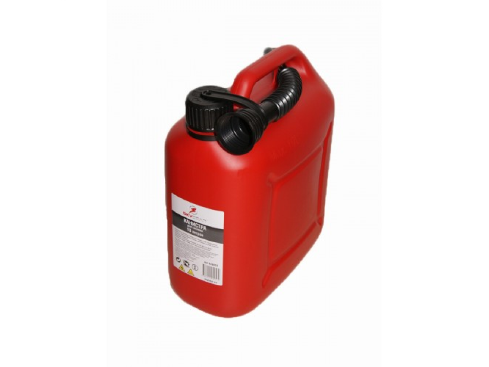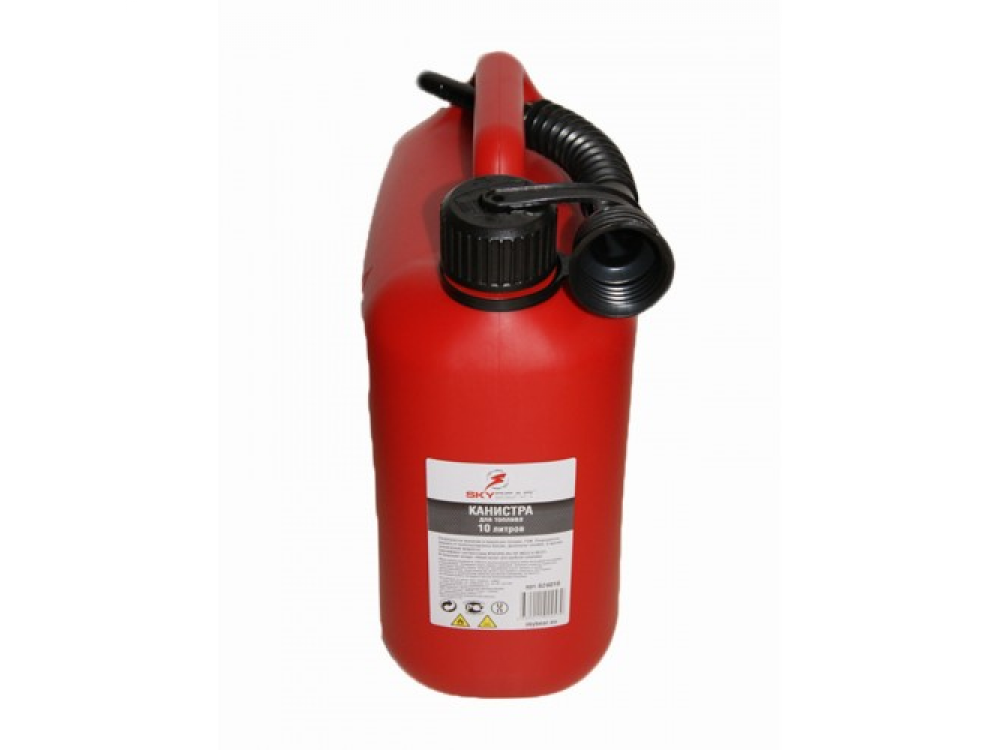 Канистра для топлива 10 л. Изготовлена из бензостойкого полиэтилена для перевозки и хранения топлива и ГСМ (Бензин, дизельное топливо и другие технические жидкости). Материал: Полиэтилен с добавлением антистатической добавки (Не накапливает статический заряд). В комплекте — крышка с защитой от вскрытия детьми и гибкий шланг.