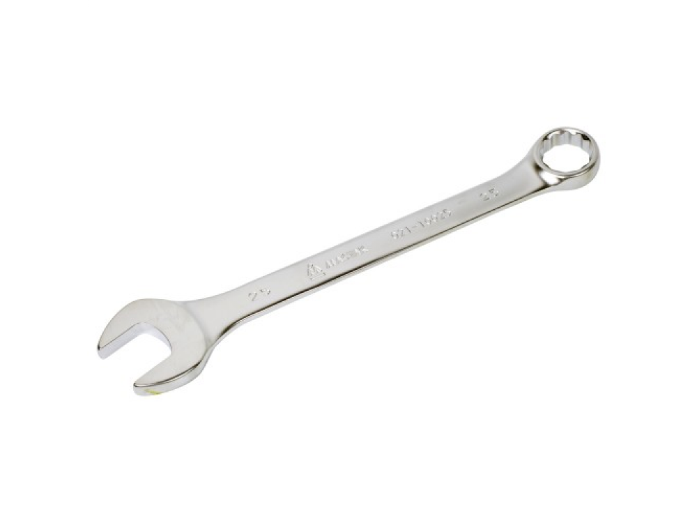 Ключ комбинированный МАСТАК 021-10025H применяется для выполнения любых видов работ с крепежом - как дома, в гараже, в авто-слесарной мастерской, станции технического обслуживания авто, мото и другой техники, так и на производстве. Изготовлен из инструментальной легированной хром-ванадиевой стали специального сплава, состоящего из 15 элементов, входящих в его состав. Хромированное покрытие защищает от коррозии и придаёт благородный матовый оттенок. Особенности: - Специальный изгиб 15° позволит работать в местах с ограниченным доступом к крепежу; - Накидная и рожковая части помогут подобраться к крепежу как с торца, так и с боку, в зависимости от места выполняемых работ; - 12-тигранный профиль накидной части универсален в работе с головками болтов или гайками как 6-ти, так и 12-тигранного профиля. Технические характеристики: - Размер: 25 мм - Длина(L): 290 мм