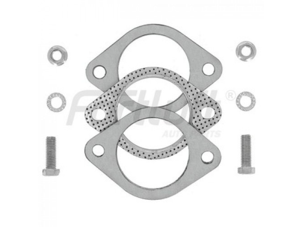Фланцевое соединение является одним из самых основных соединений компонентов выхлопной системы. Один фланец приваривается к одной части выхлопной трубы, другой к ответной и соединяется болтами через прокладку. Толщина фланца 8мм, изготовлен фланец из нержавеющей стали, что обеспечивает долгосрочный срок эксплуатации.