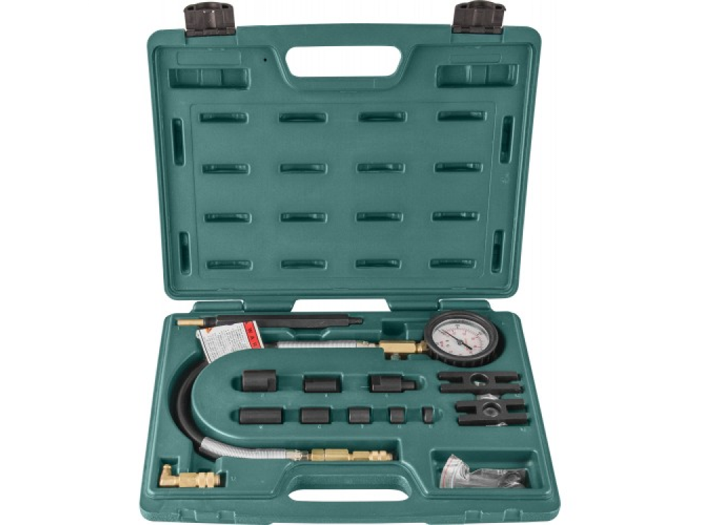 Компрессометр применяется для контроля состояния деталей цилиндро-поршневой группы и ГРМ дизельных двигателей грузовых автомобилей. Прибор комплектуется большим 100 мм манометром в ударопрочном, обрезиненном корпусе. Манометр рассчитан на измерение давления в диапазоне 0 - 60 кгс/смкв.. Соединительный, армированный шланг высокого давления, длиной 355 мм, имеет быстросъемный переходник для соединения с форсуночным адаптером.