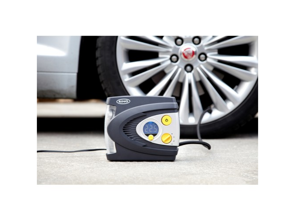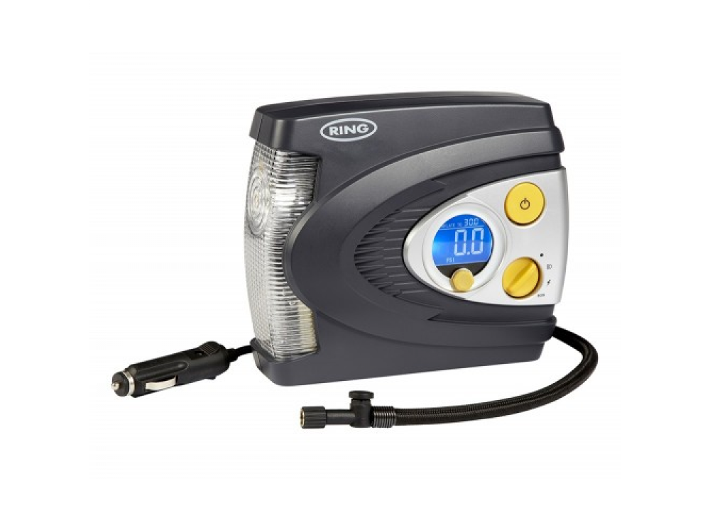 Воздушный компрессор Ring RAC635 со светодиодной подсветкой - небольшой мощный компрессор, облегчающий уход за шинами. Настройка проста, просто поверните поворотную ручку до необходимого давления, затем нажмите старт. RAC635 будет накачиваться до тех пор, пока не будет достигнуто выбранное давление, а затем автоматически остановится. Цифровой экран с подсветкой четко показывает процесс работы, давление отображается в кПа, фунтах на квадратный дюйм или бар. Встроенный светодиодный свет облегчает работу ночью и делает его более безопасным, и его можно установить в режим SOS с красным сигналом, чтобы привлечь внимание или предупредить других автомобилистов.