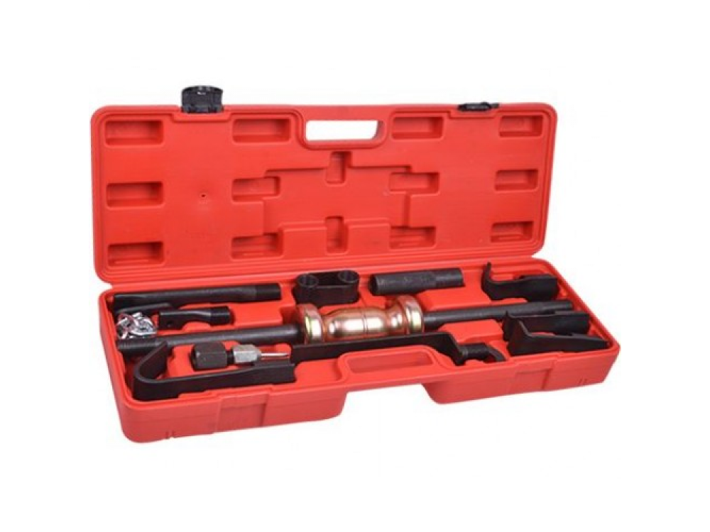 Обратный молоток TA-D1089 позволяет восстановить геометрию кузовных деталей автомобиля. С его помощью можно удалить вмятины, а также работать с деталями, расположенными в труднодоступных местах. Принцип работы заключается в том, чтобы прикрепить необходимый захват к деформированной детали и ударить в опорную шайбу обратным молотком. Для более удобного хранения набор поставляется в кейсе.