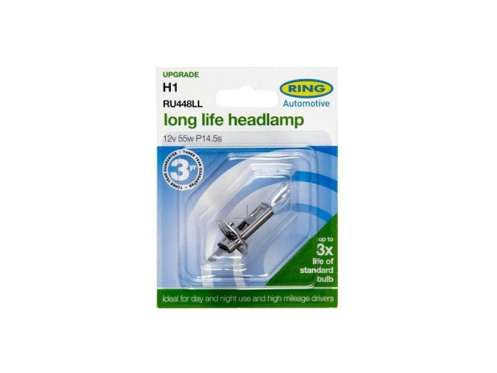 Автолампа с гарантией 2 года в пластиковой упаковке (по 1 шт): 12 вольт, мощность 55W, цоколь H1 (P14.5s)