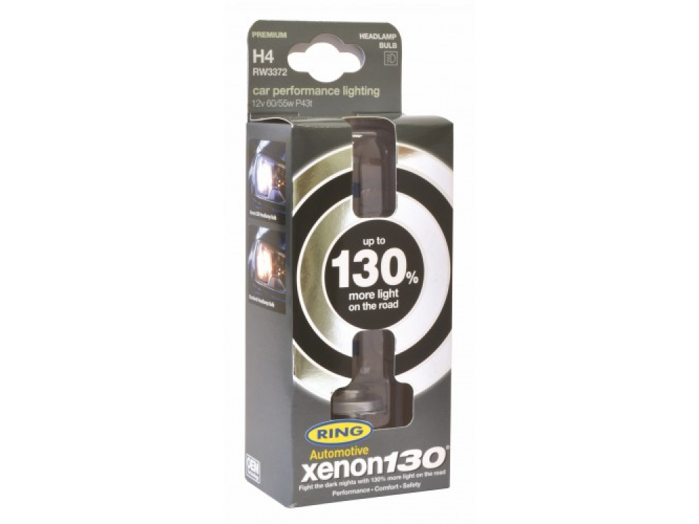 Автолампа XENON +130% в пластиковой упаковке (по 2 шт): 12 вольт, мощность 60/55W, цоколь H4 (P43t)