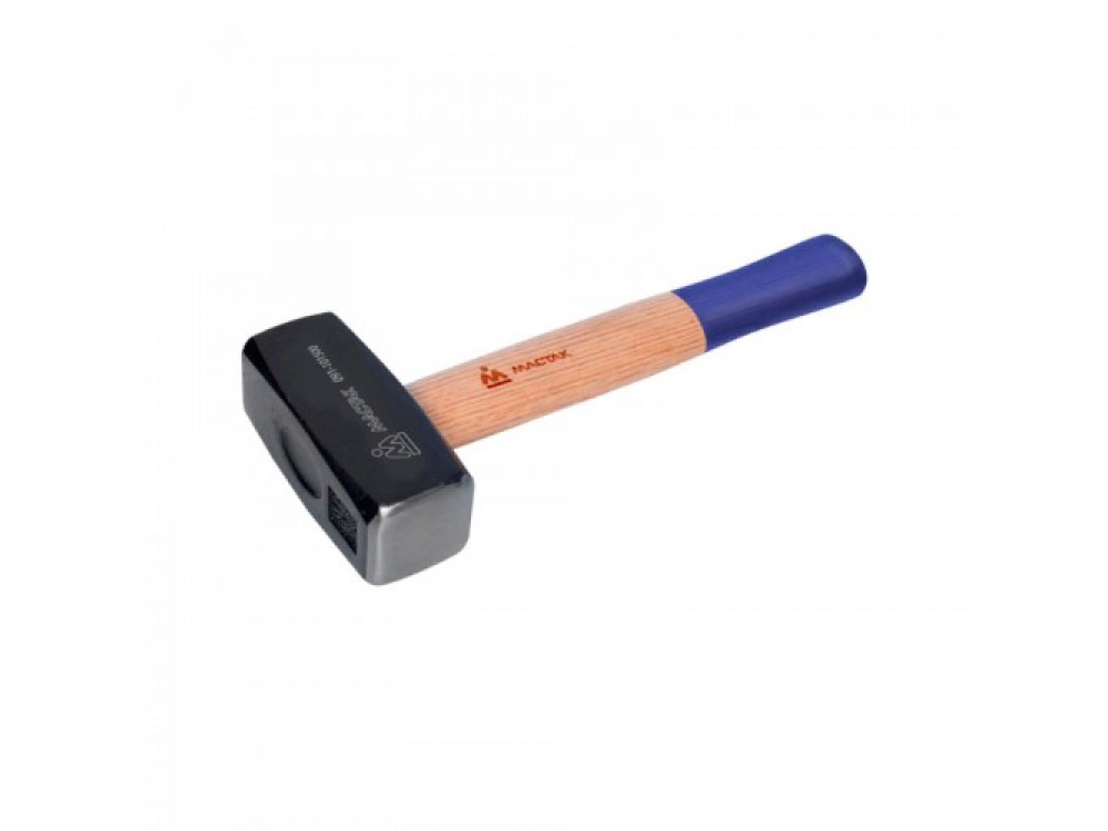 Кувалда слесарная 1500 г, МАСТАК для установки металлического крепежа, рихтовочных и других работ, связанных с применением ударных нагрузок. Особенности: - Стальной квадратный боёк двустороннего действия изготовлен из конструкционной стали специального сплава, устойчивого к сколам и замятиям. - Укороченная рукоятка из древесины гикори, породы семейства канадского орешника, обладающей высокой прочностью, устойчива к износу, не подвержена воздействию влаги, удобно и надёжно лежит в руке. - Соответствует стандарту качества DIN6475. Технические характеристики: - Тип бойка квадратный, двустороннего действия - Вес бойка: 1 500 г