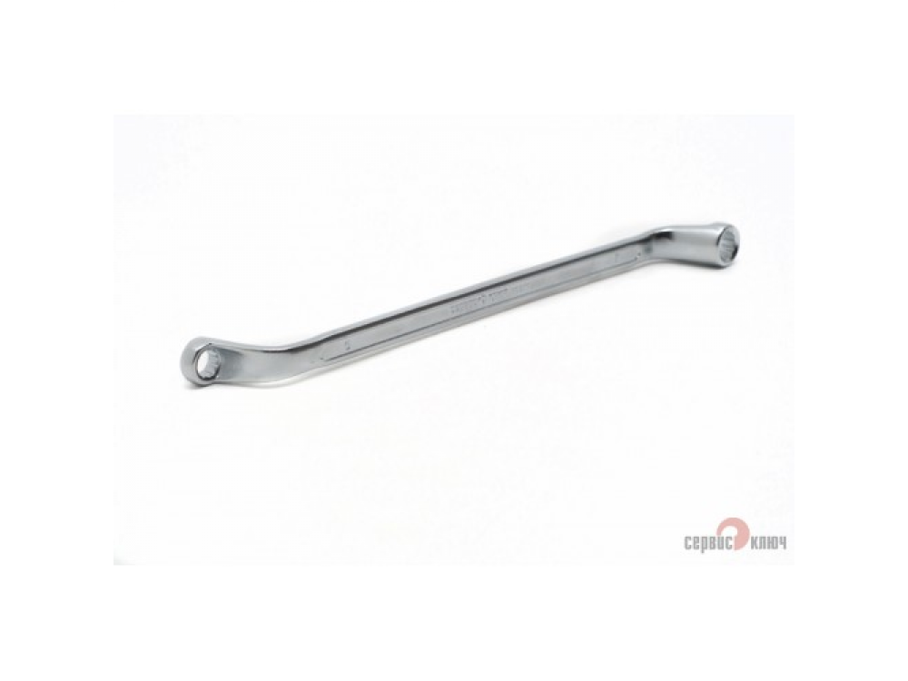 Двусторонний накидной ключ со смещением. Имеет на обоих концах 12-гранные накидные профили. Накидной профиль со смещением предоставляет более широкие возможности при работе в ограниченном пространстве. Изготовлен из высококачественной хромованадиевой (Crv) стали методом холодного штампа, тверность 40-45 HRC.
