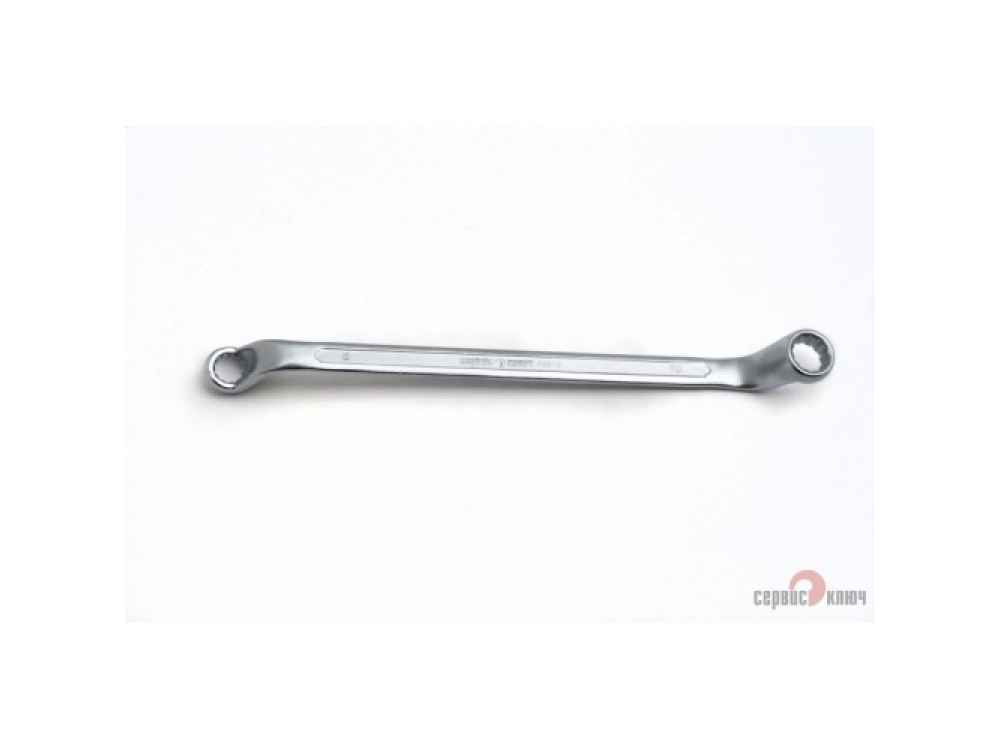 Двусторонний накидной ключ со смещением. Имеет на обоих концах 12-гранные накидные профили. Накидной профиль со смещением предоставляет более широкие возможности при работе в ограниченном пространстве. Изготовлен из высококачественной хромованадиевой (Crv) стали методом холодного штампа, тверность 40-45 HRC.