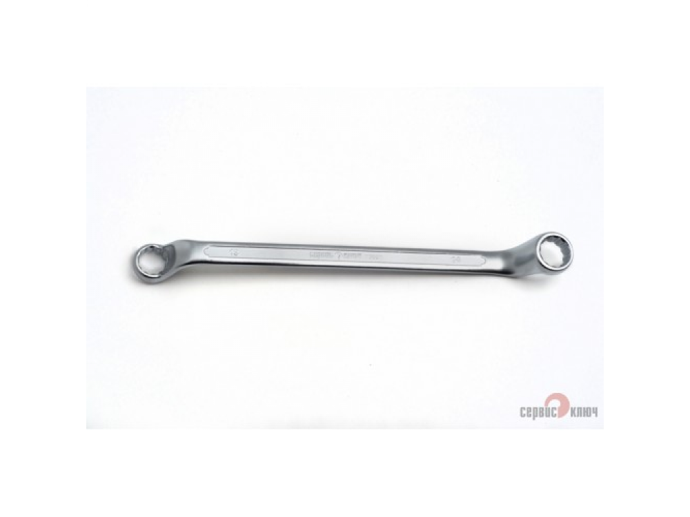 Двусторонний накидной ключ со смещением. Имеет на обоих концах 12-гранные накидные профили. Накидной профиль со смещением предоставляет более широкие возможности при работе в ограниченном пространстве. Изготовлен из высококачественной хромованадиевой (Crv) стали методом холодного штампа, тверность 40-45 HRC.