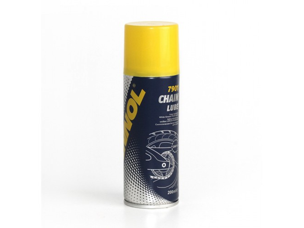 MANNOL Chain Lube – полностью синтетическая белая смазка для высоконагруженных быстродвижущихся цепей городских, гоночных и шоссейных мотоциклов. Отличается устойчивостью к воздействию высоких (до 260 °C) и низких температур, а также воды, пыли и грязи. Микрокерамические компоненты в составе смазки обеспечивают надежные смазывающие и противозадирные свойства. Благодаря сильнейшим адгезионным характеристикам подходит для сильно нагруженных и быстроходных цепей, надежно защищая цепные передачи от коррозии. Этот продукт препятствует растяжению цепи, тем самым продлевая срок ее службы.