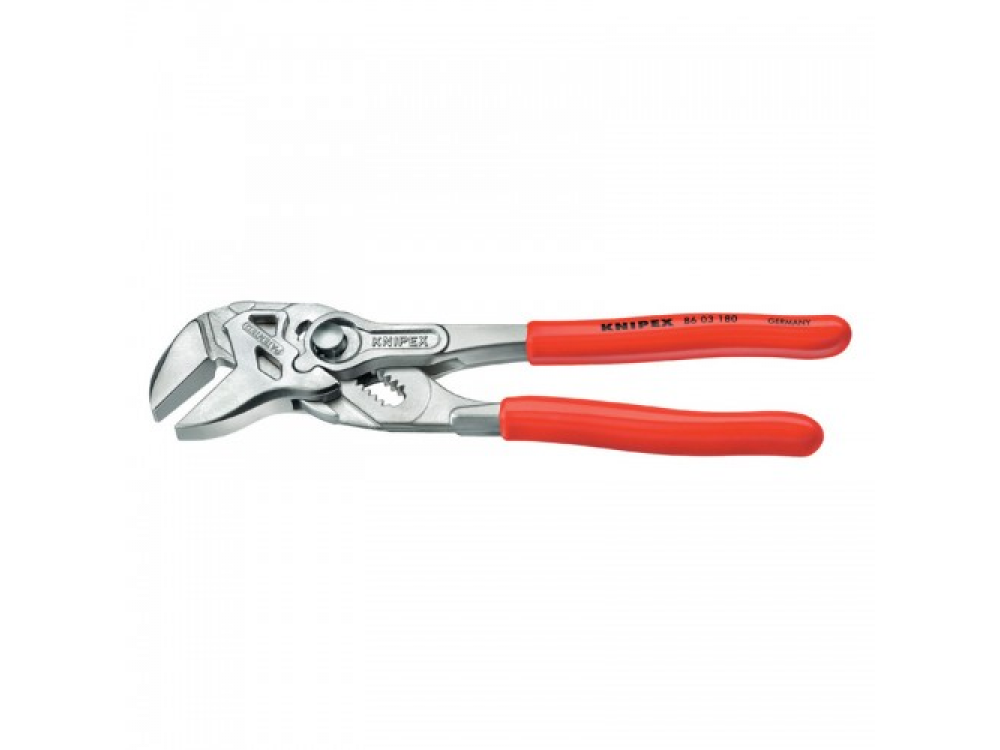 Ключ клещевой Knipex KN-8603180 используются для различных видов работ: опрессовка, сжатие и изгибание деталей, обламывание кафельной плитки и пр. Для выполнения работ в труднодоступных местах захватные плоскости инструмента специально сужены. Наличие специального механизма способствует простой и быстрой регулировки раствора клещевого ключа при помощи всего одной кнопки. Чехлы рукояток, изготовленные из пластмассы, служат для более удобной и безопасной работы.