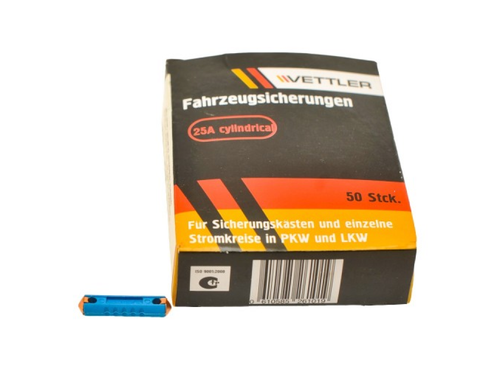 Главная / Автотовары / Электрооборудование / Ремонт электрики / Предохранители / Предохранитель 25А цилиндрический VETTLER
