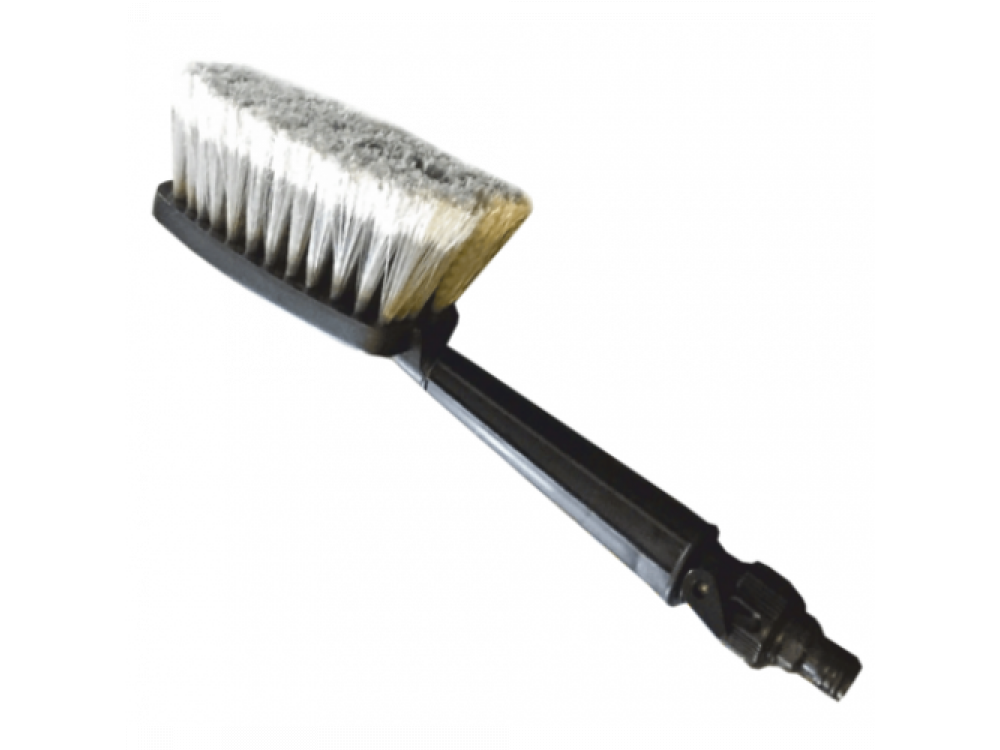 Материал основания: Высокопрочный пластик Рукоятка в местах хвата: Эргономичная пластиковая Длина общая, см.: 34,5 см Тип расположения насадки с щетиной: Продольное расположение Наличие щетины не оставляющей царапин: Есть Наличие фитинга для подачи воды из шланга: Есть, съемный - быстросборный Наличие запорного крана для воды: Есть, быстросъемный