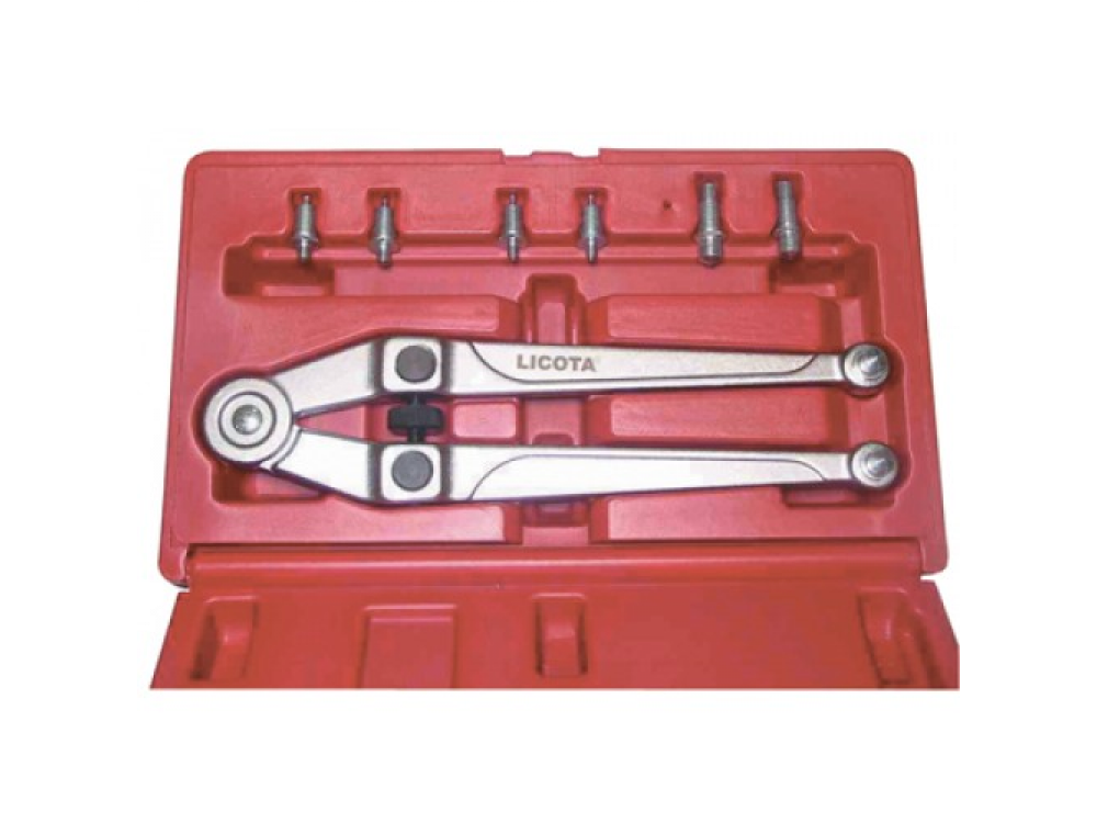 Универсальный фиксатор Применяется для удержания шкивов, шестерен и муфт Диаметр штифтов: 2,5 - 4 мм, 3 - 5 мм, 6 - 8 мм, 7 - 9 мм Хорошо подходит для удержания вискомуфт на VW-Audi OEM номер VAG: 3212