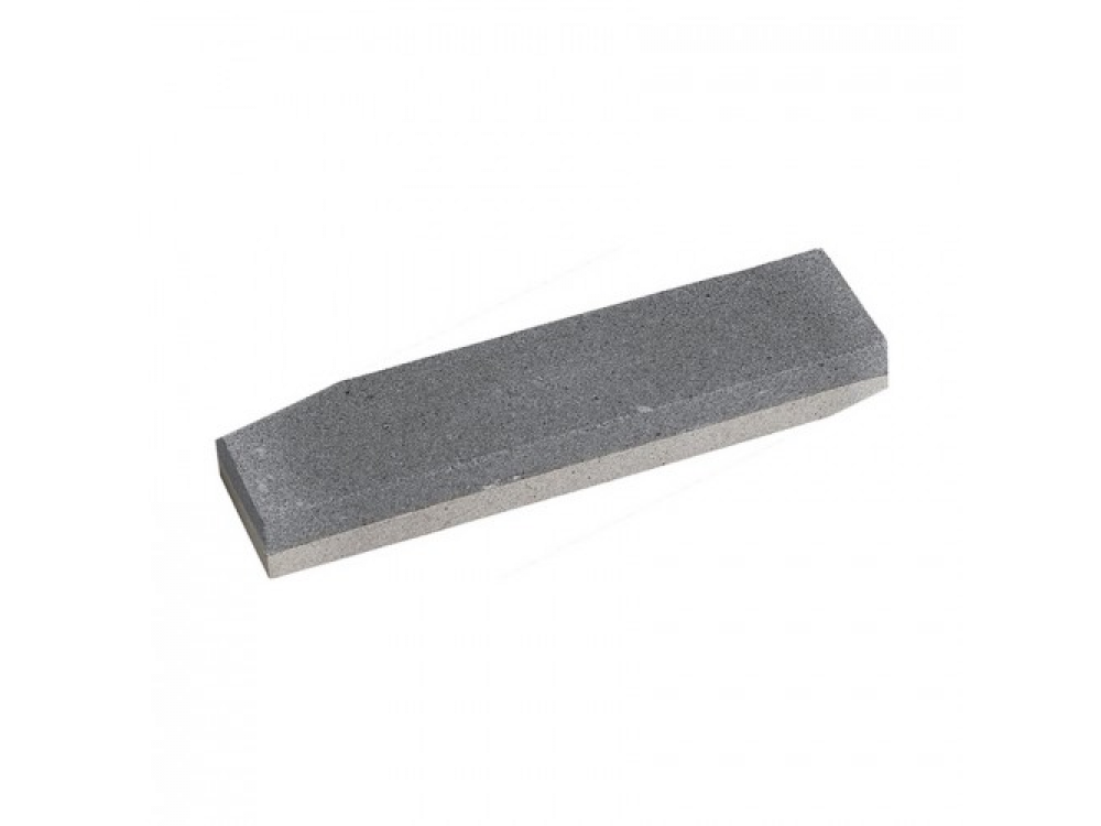 Искусственный двухсторонний точильный камень изготовлен из оксида алюминия, с двумя размерами зерна (с разных сторон бруска). Применяется для правки и заточки режущих кромок инструментов и последующей доводки.