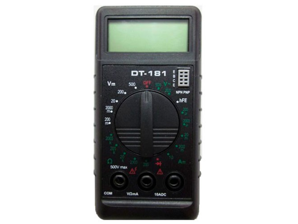 Мультиметр РЕСАНТА DT181 - миниатюрный, износостойкий, 3 1/2 - разрядный мультиметр. Предназначен для измерения постоянного и переменного напряжения, постоянного и переменного тока, сопротивления, проверки диодов, транзисторов, звуковой "прозвонки". Метод измерений - АЦП двойного интегрирования с автоматической коррекцией нуля, автоматическим определением полярности и индикацией перегрузки. Полная защита от перегрузок. Используется для применения в полевых условиях, лабораториях, мастерских и домашнем хозяйстве.