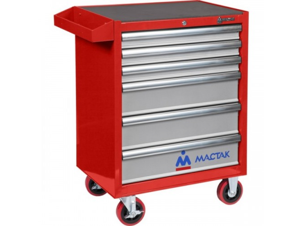 Тележка инструментальная, 6 ящиков, красная МАСТАК 521-06581R предназначена для организации рабочего места в автосервисе, на станции технического обслуживания, в гараже, а также в любом другом производственном помещении. Технические характеристики: - Тип тележки - закрытая - Количество ковриков - 7 шт - Цвет - красный - Макс. нагрузка - 450 кг - Количество ящиков - 6 шт - Центральный замок - да - Размеры ящиков - 580х406 мм - Габариты - 680х460х955 мм - Нагрузка на ящик - 20 кг - Масса - 67 кг