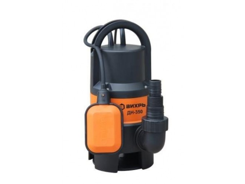Дренажный насос ВИХРЬ ДН-350 предназначен для откачивания и отведении воды и стоков с инородными примесями из различных водоёмов и резервуаров (котлованов, шахт, сливных ям и т.д). С их помощью можно выкачивать воду в случае подтопления жилых помещений и подвалов. Электродвигатель насоса асинхронный, однофазный с короткозамкнутым ротором. Корпус изготовлен из прочного пластика. Максимальная глубина всасывания составляет не более 8 метров. Температура перекачиваемой жидкости должна быть от +1°С до +35°С. Не допускается работа дренажного насоса "в сухую" (без воды), попадание воздуха во всасывающую магистраль. От перегрузки насос защищает термопротектор, отключение происходит автоматически. При временной установке рекомендуются гибкие трубы, для постоянной установки рекомендуются жесткие трубы. При использовании данной модели допускается большой уровень загрязнённости воды, наибольший размер твёрдых частиц не должен превышать 35 мм. Насос оснащён внешним поплавковым выключателем, который отрегулирован на определённый уровень включения и отключения насоса. Необходимо удостовериться, что при минимальном уровне воды выключатель отключает насос. Убедитесь, что объем воды в пределах max и min поля регулирования по отношению к количеству перекачиваемой воды и не требует от насоса более 20 включений в час.
