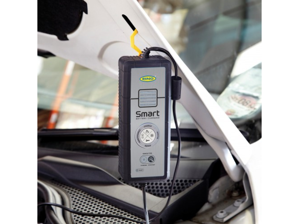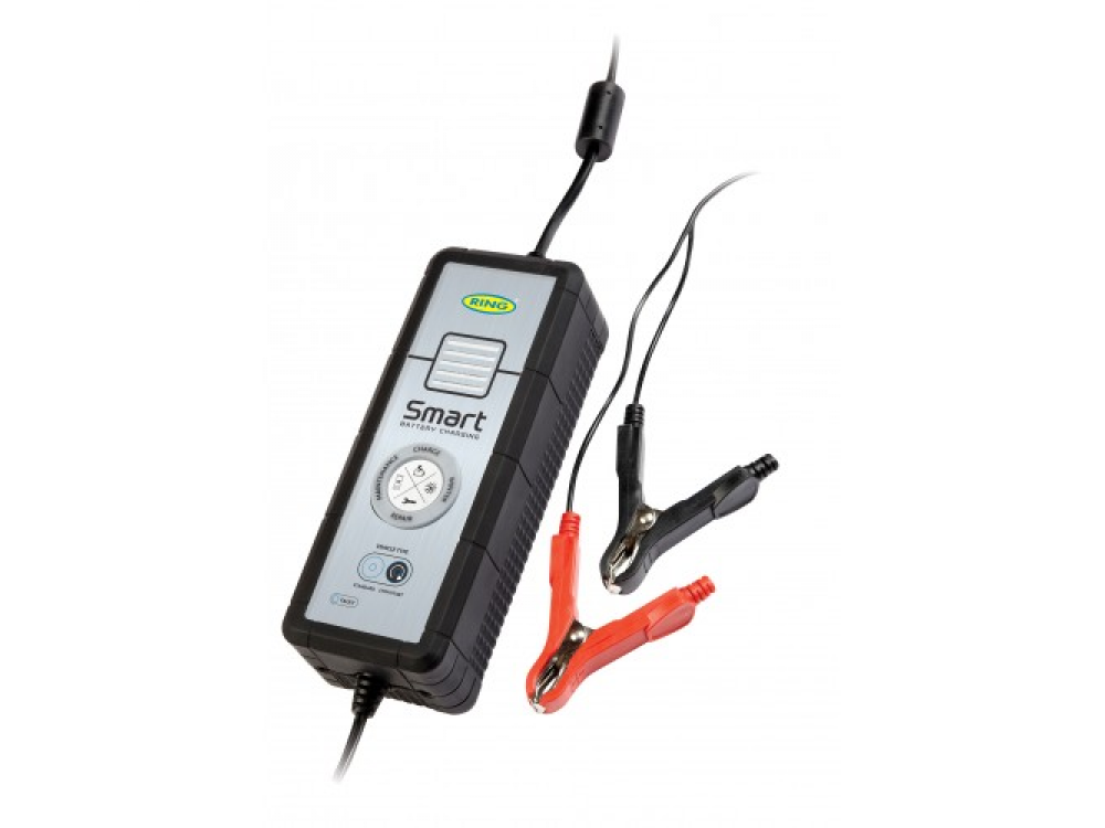 Автоматическое интеллектуальное зарядное устройство Ring RESC605. Светодиодные индикаторы показывают определенный выбранный режим заряда АКБ. Индикатор этапа заряда – отображает степень заряда. Покрыт снаружи резиной для дополнительной защиты и сцепления. Защита от неправильной полярности. Полностью изолированные зажимы. Длина кабеля с зажимами 1,8m.
