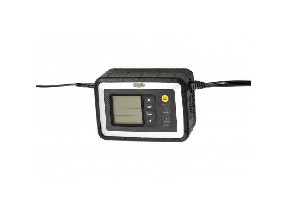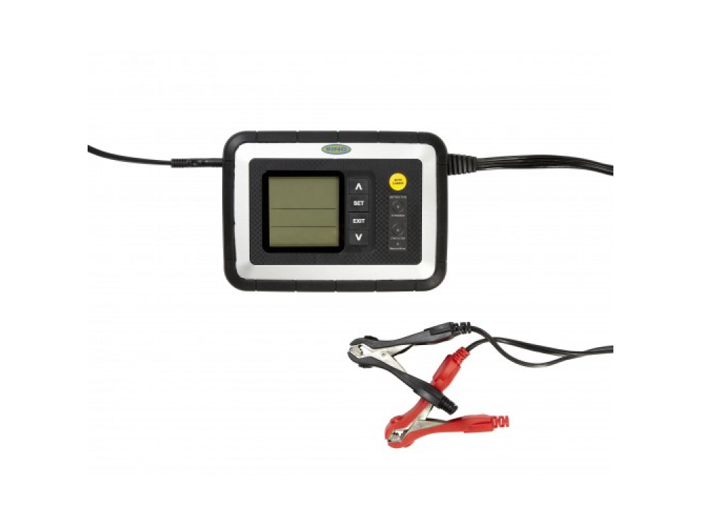 Интеллектуальное зарядное устройство Ring RESC608 — полностью автоматическое всепогодное зарядное устройство 8A. Светодиодные индикаторы показывают выбранный режим зарядки.